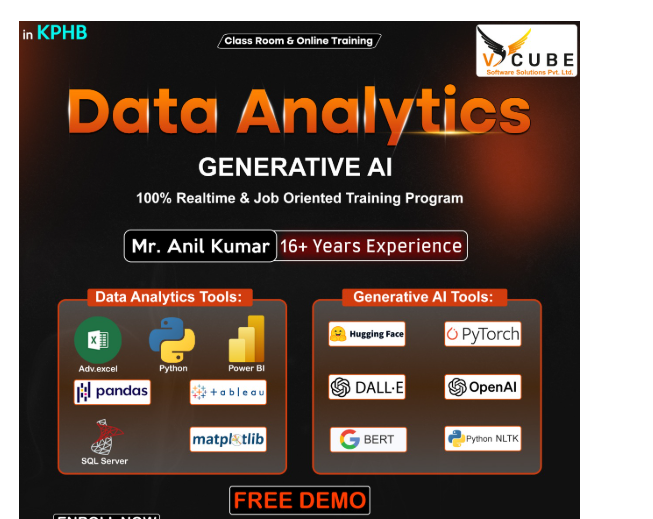 Whether you’re looking for a beginner-friendly data analyst course in Hyderabad or searching for the best data analytics certification, V Cube Software Solutions provides the right mix of theory, practice, and industry projects. With our expert-guided data analyst training, you gain the skills to build a successful career in the world of data.